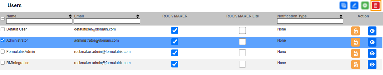 .Go to the Users section and click on a username checkbox(es). Then, click the Delete button on the top right side.
