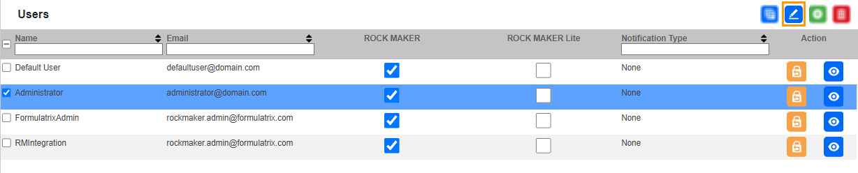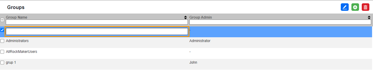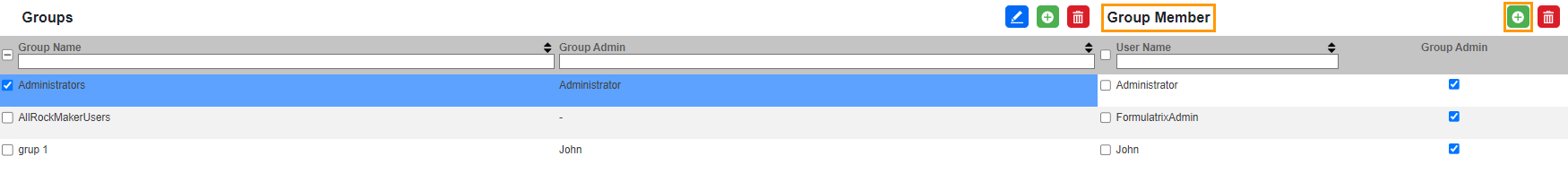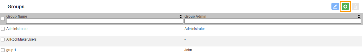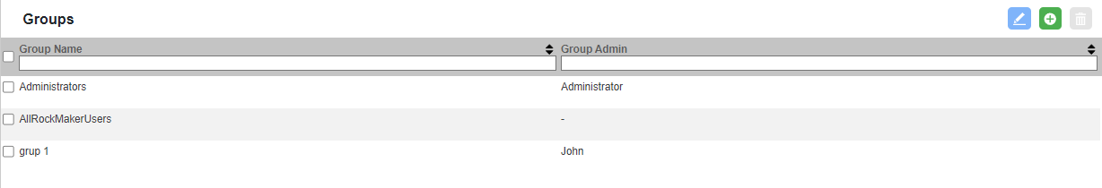 ROCK MAKER comes with two default groups, Administrators and AllRockMakerUsers, which you can add if necessary. A group consists of multiple ROCK MAKER users with the same access to software features.