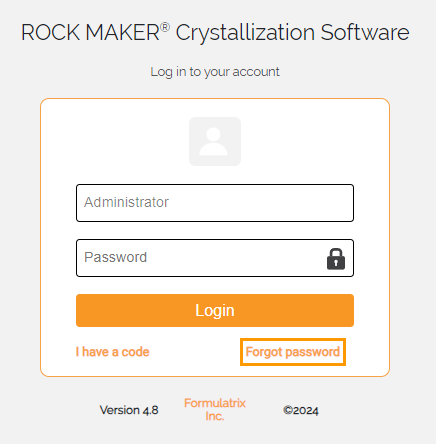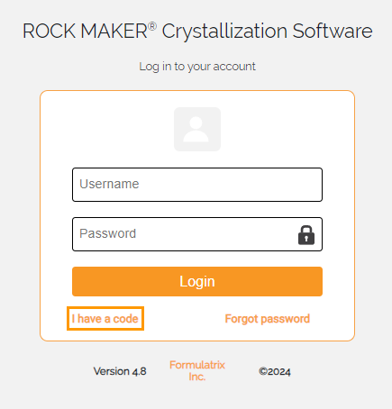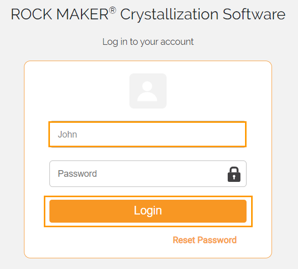 On your ROCK MAKER login page, enter your username in the Username field. Then, click Login or press Enter on your keyboard.
