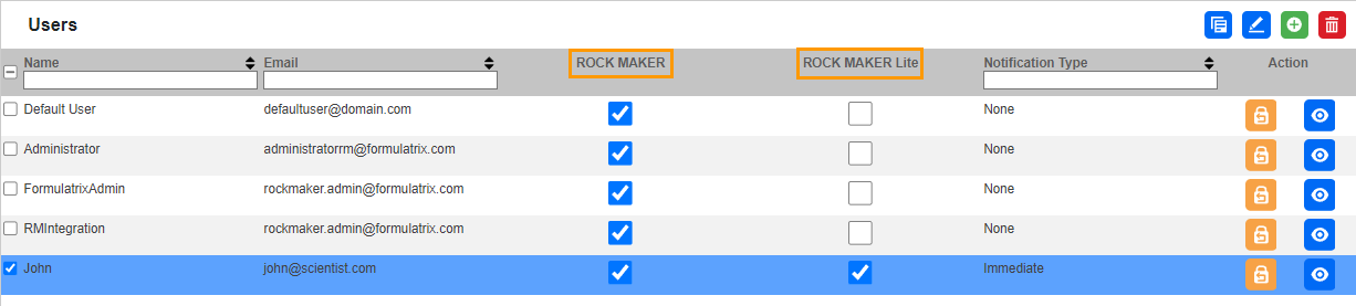 ROCK MAKER Lite checkbox to grant access to ROCK MAKER Lite only.