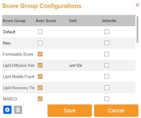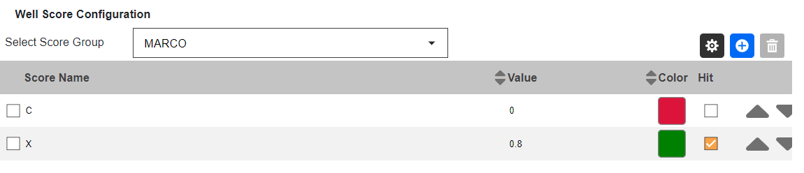 on the top right of the Well Score Configuration section to open the Score Group Configurations dialog box.