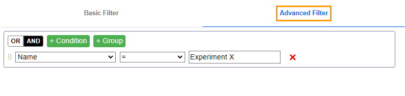 The Advanced Filter panel allows you to customize parameters. It comprises the Operator, Add Condition, and Add Group buttons.