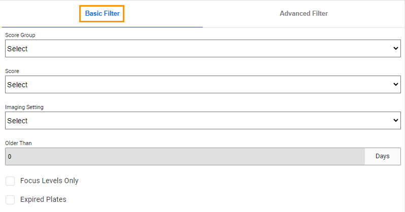 The Basic Filter panel allows you to define the default parameters, including the following dropdowns and checkboxes.
