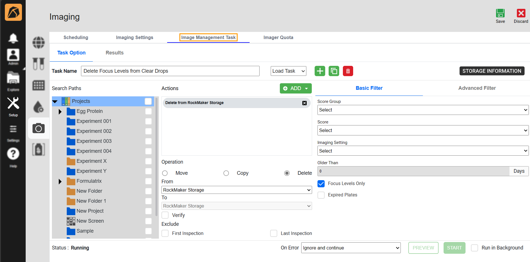 • The Run in Background checkbox: automate the image management task if checked. This checkbox is optional.