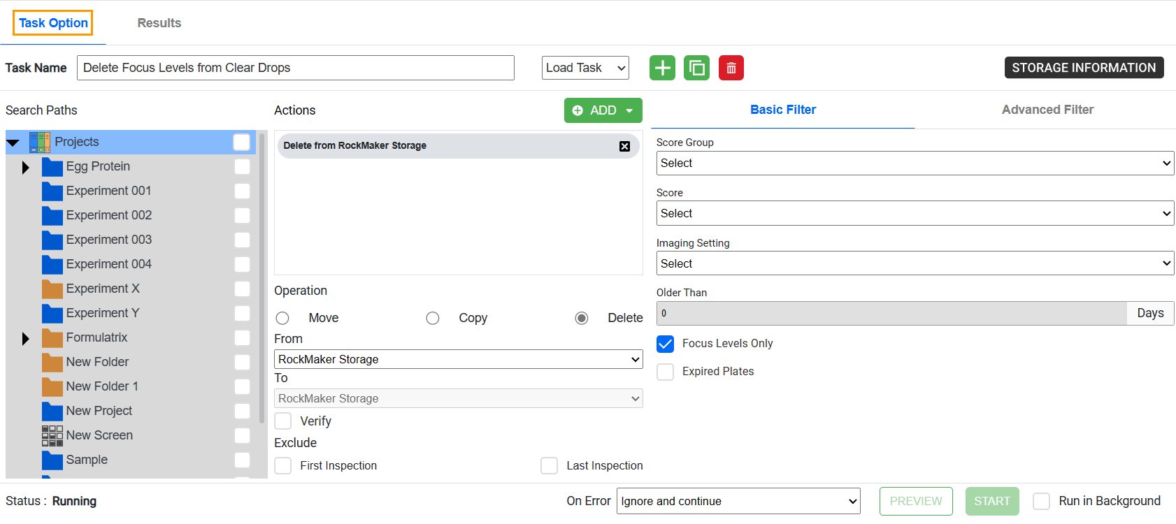 • The PREVIEW button: preview the images affected by the actions. You can verify whether a task targets appropriate images before executing it.