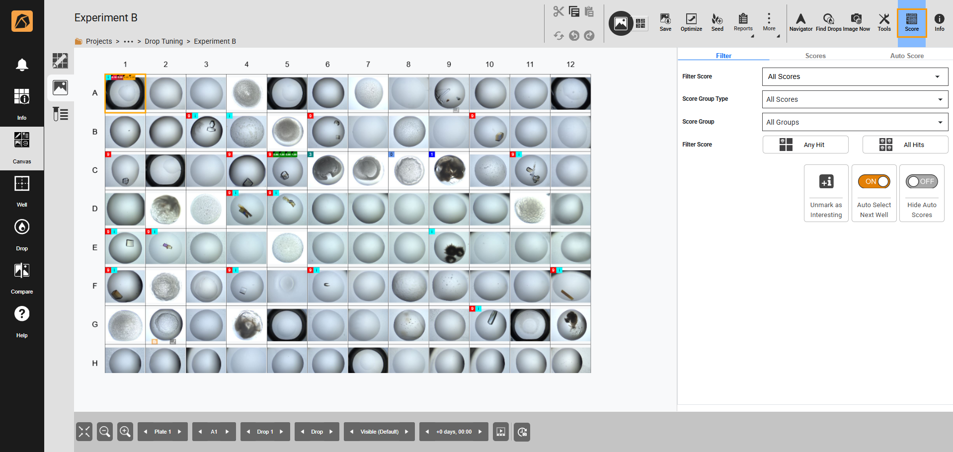 Marking specific drops as “interesting” means applying a special kind of scoring to them. Once a drop(s) is marked as interesting, you can use the integrated ROCK IMAGER to image only that drop(s) — saving you time and disk space.