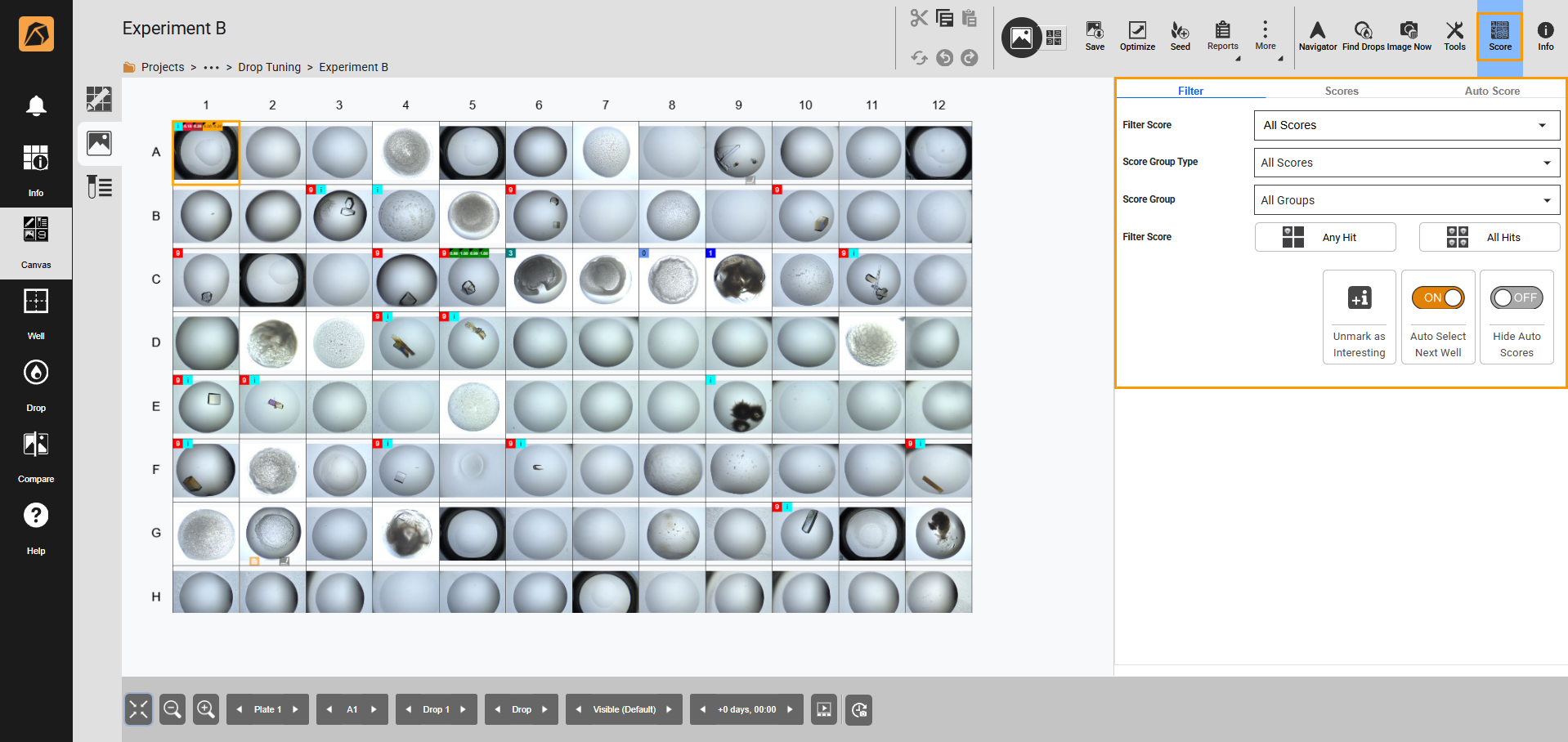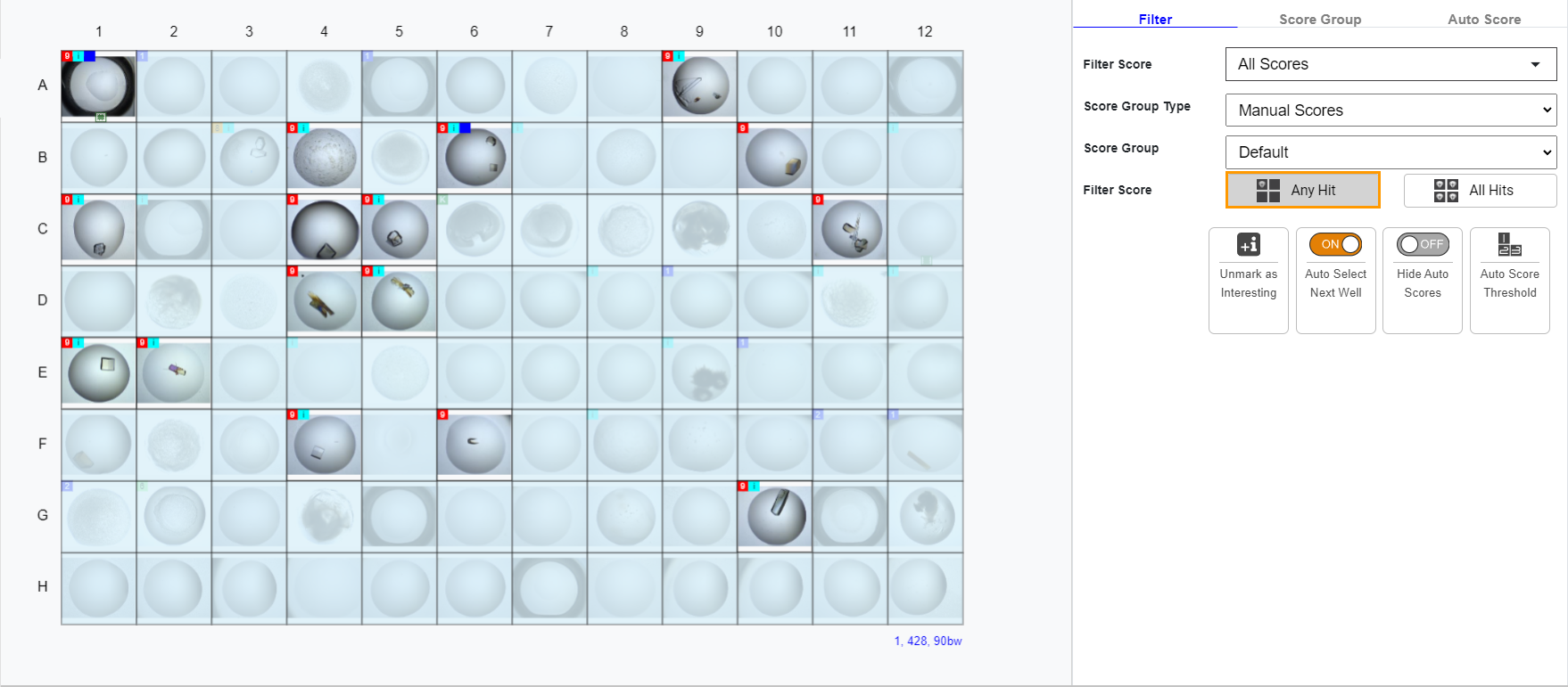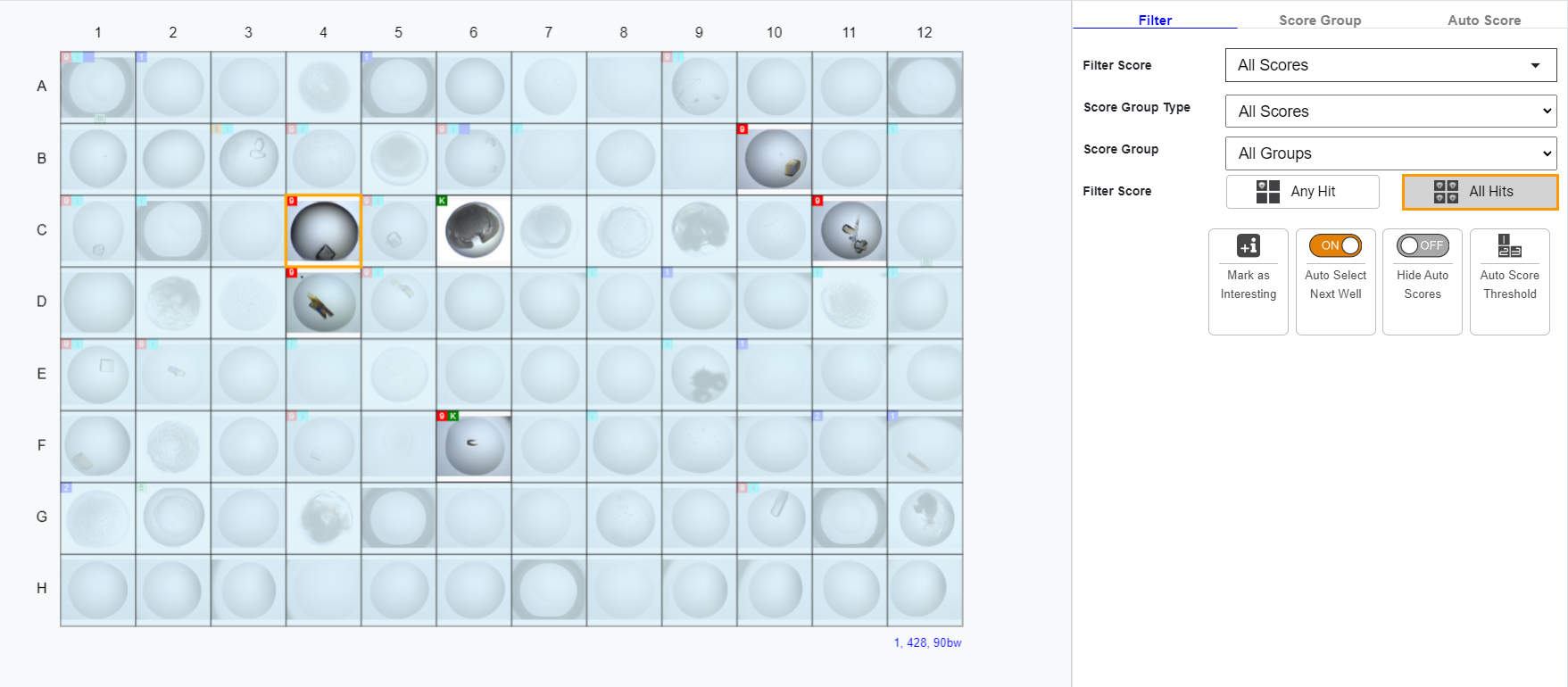 Activating the Auto Select Next Well button in the Filter tab automatically moves you to the next well when scoring images.