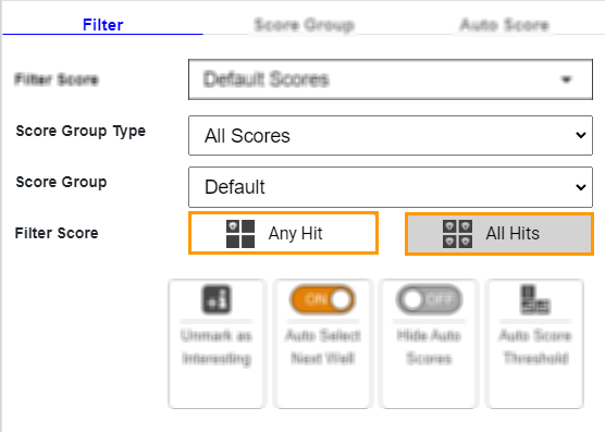 Selecting All Hits displays images containing all hits in each image within the selected Score Group Type and Score Group fields.