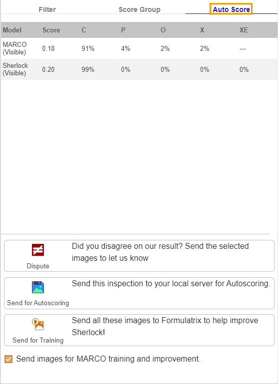 Disputes an auto score of an image if you disagree with the result and want to recommend the correct score. |