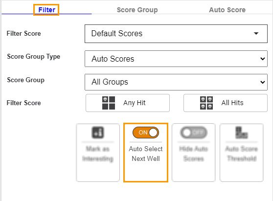 It is recommended to turn off the Auto Select Next Well button in the Filter tab before removing and changing the scores.