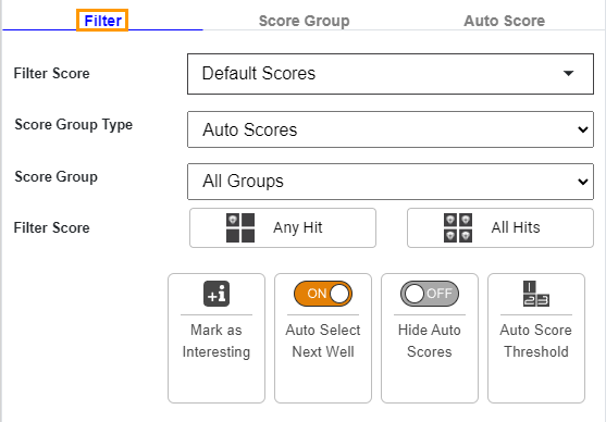 Once you click the button, the Score panel will appear on the right side of your screen which comprises three tabs: Filter, Score Group, and Auto Score.