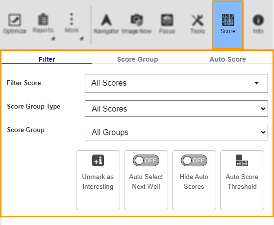 Manual scores are the scores you give a plate through your own analysis. When viewing images, you can easily assign scores to them by pressing the corresponding numeric key on your keyboard or through the Score Group tab in the Score panel.