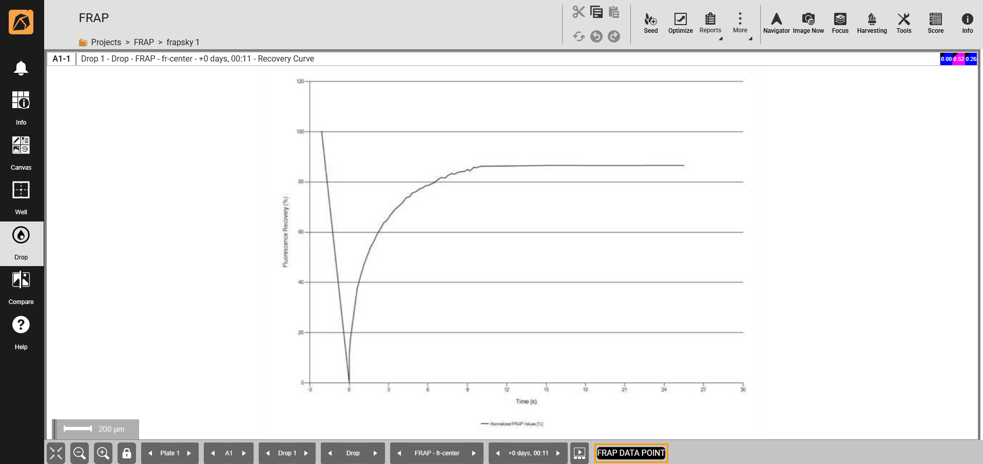 3. Click the FRAP DATA POINT button on the bottom bar to display the data point graph of the drop.