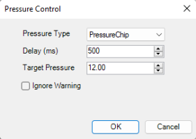 OPTIONAL: Select the Ignore Warning option to hide the warning message that informs you if the TEMPEST failed to achieve the target pressure within the delay period. By ignoring the message, TEMPEST will automatically use the current pressure value, which may cause inaccurate dispense result.