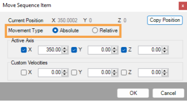 OPTIONAL: Click Copy Position to duplicate the current position to each axis field in the Active Axis section.