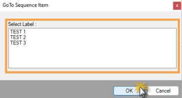 In the Go To N Sequence Item window, select a label from those previously defined in the Sequence Item Table.