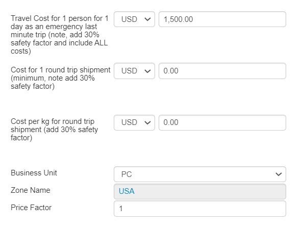 The defined price factor is defined by zone. It is important to note that the price factors for LH and PC can be different;