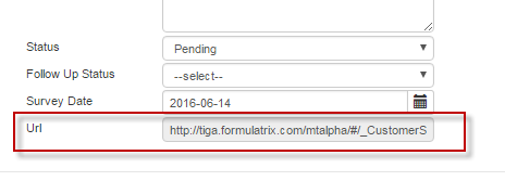 Click Update in the lower-right corner of the Edit Customer Survey window. Reopen the record and the URL address will be automatically generated in the Url field.