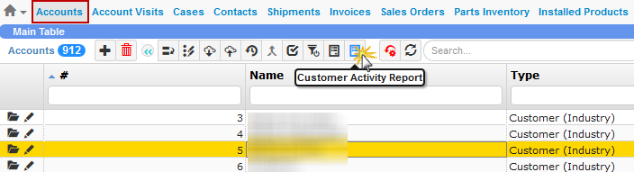 Customer Activity Report Button on the Accounts Table