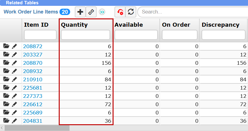 Work Order Line Items